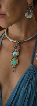 I spend my time searching for high quality, stunning crystals which are then complimented by mesmerizing patterns woven around them. My hope is to help create a connection with a crystal that means something to you.