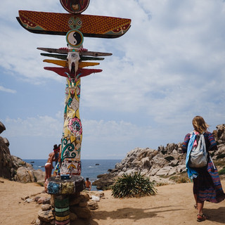 After a refreshing morning swim, we set off on day 2 of our ladies road-trip around the island. A little more research and we were headed for Capo Testa (and by research, I mean zooming in on the map looking for lovely locations). This location was rather unexpected and quite random ~ we parked our little Fiat Panda in the sunshine and began to follow the pathway to our next slice of mermaid paradise. A few metres in, a sign read something like "Commune Valle della Luna". Even with my very vague Italian vocabulary I could still understand what that meant..a commune in a valley up ahead. Very curious, we followed the path into the valley of the moon. We were greeted by a group of scruffy strangers who were indeed living there. Once again the landscape was formed from rock which was protruding from the earth in different directions and boulders of all sizes were scattered around the place. It's such a beautiful place ! The residents had even built themselves little cave-like shelters within the rocks. Some had hammocks and judging by the cardboard boxes full of fruits, they seemed to be well fed. We enjoyed a heavenly swim and decided to stick to our schedule and explore a little further (even though they offered to cook us dinner as we were leaving haha).